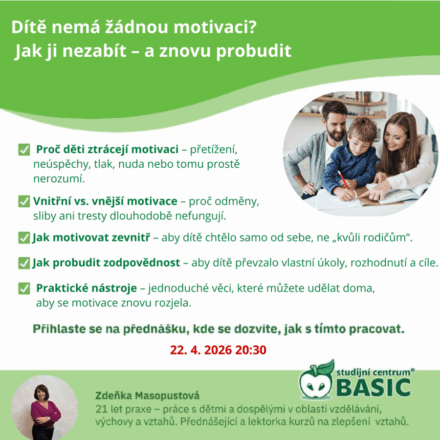 Přihlášením přes formulář je potřeba zadat vaše jméno a e-mail. Do zprávy nám napište, že máte zájem o přednášku „Dítě nemá žádnou motivaci?“. My vám poté na e-mail zašleme odkaz k přihlášení.