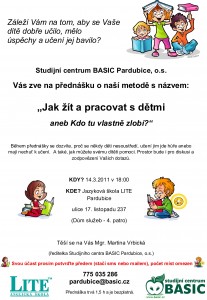 Dne 14.3.2011 se bude v Pardubicích konat přednáška pro rodiče, pedagogy a širokou veřejnost. Přijďte nás navštívit.