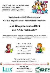 Dne 1.6.2011 se bude v Pardubicích konat přednáška pro rodiče, pedagogy a širokou veřejnost. Přijďte nás navštívit.