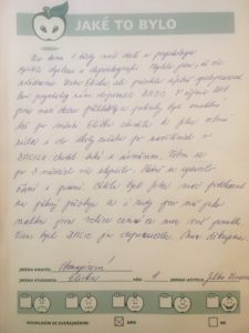 „Líbilo se mi tady moc. A učila jsem číst a psát a počítat. Strašně jsem ráda chodila. Jitka je srandovní a a skvělá učitelka.“