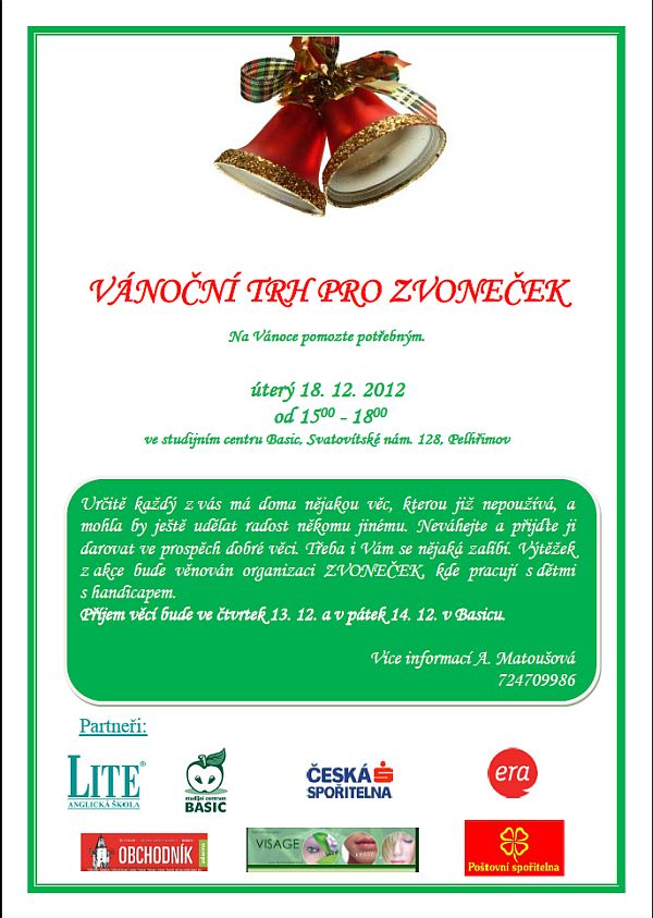 V úterý 18. 12. 2012 od 1500 – 1800ve studijním centru Basic, Svatovítské nám. 128, Pelhřimov